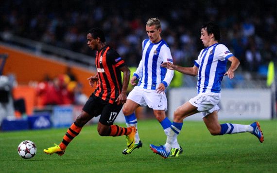 Real Sociedad were punished for failing to take their chances as they were beaten 2-0 by Shakhtar Donetsk thanks to Alex Teixeira's brace.